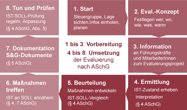 Seit 1. Jänner 2013 gilt in Österreich die Evaluierungspflicht für psychische Belastungen am Arbeitsplatz. Die ASchG-Novelle regelt die verbindliche Ermittlung und Beurteilung von psychischen Belastungen und Gefährdungen am Arbeitsplatz. Arbeits- und OrganisationspsychologInnen haben das notwendige Wissen um die Evaluierung zu planen, durchzuführen und bei der Ableitung passender Maßnahmen zielführend zu beraten. Diese Evaluierungspflicht umfasst die systematische Erhebung der psychischen Belastungen bei den jeweiligen Arbeitsplätzen und in weiterer Folge die Festlegung von geeigneten Maßnahmen zur Beseitigung der erhobenen Belastungen.